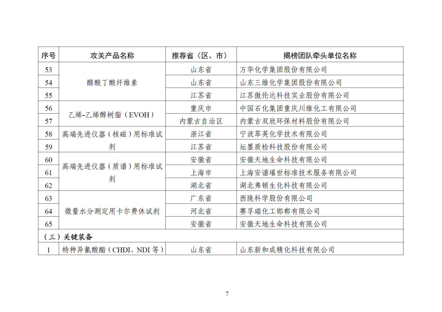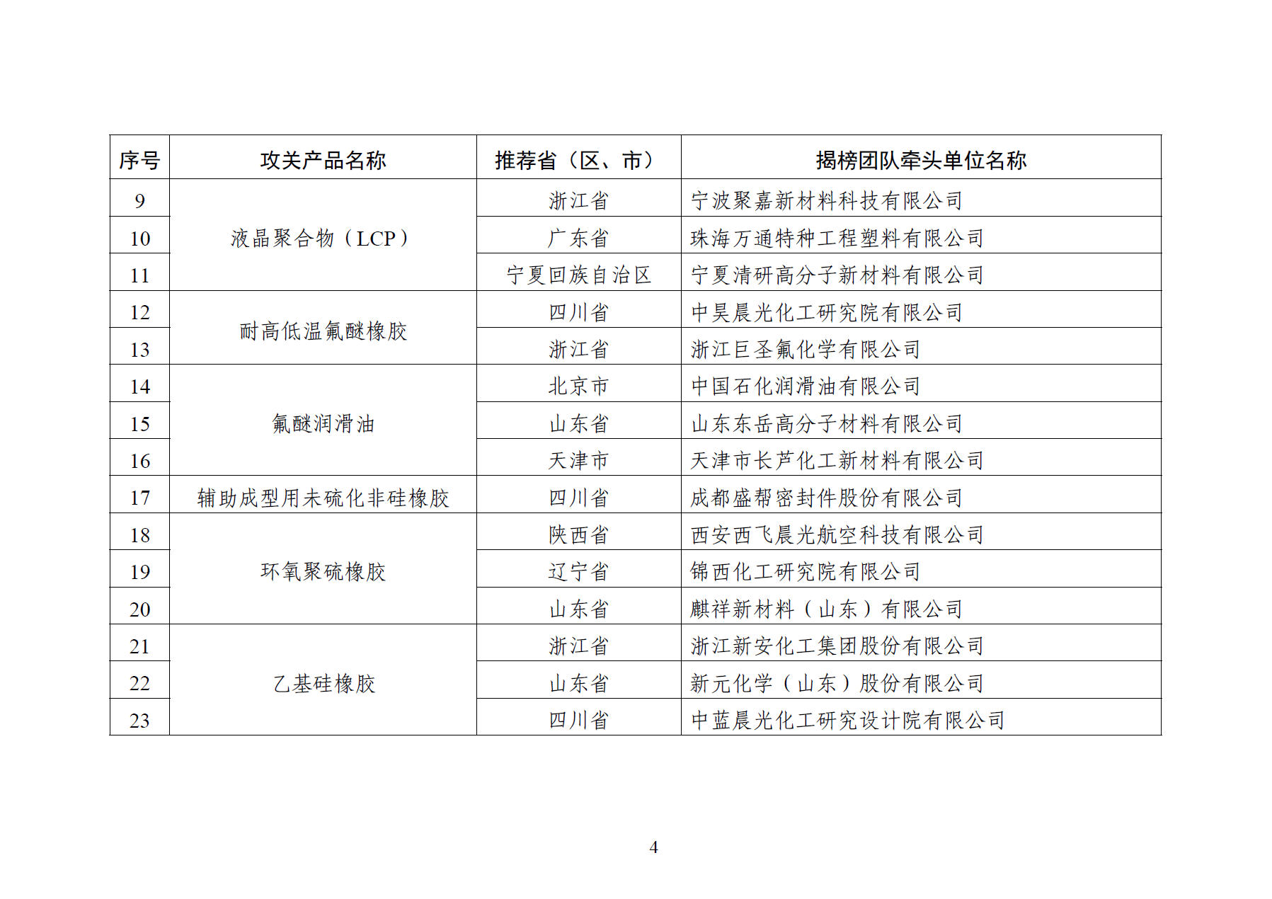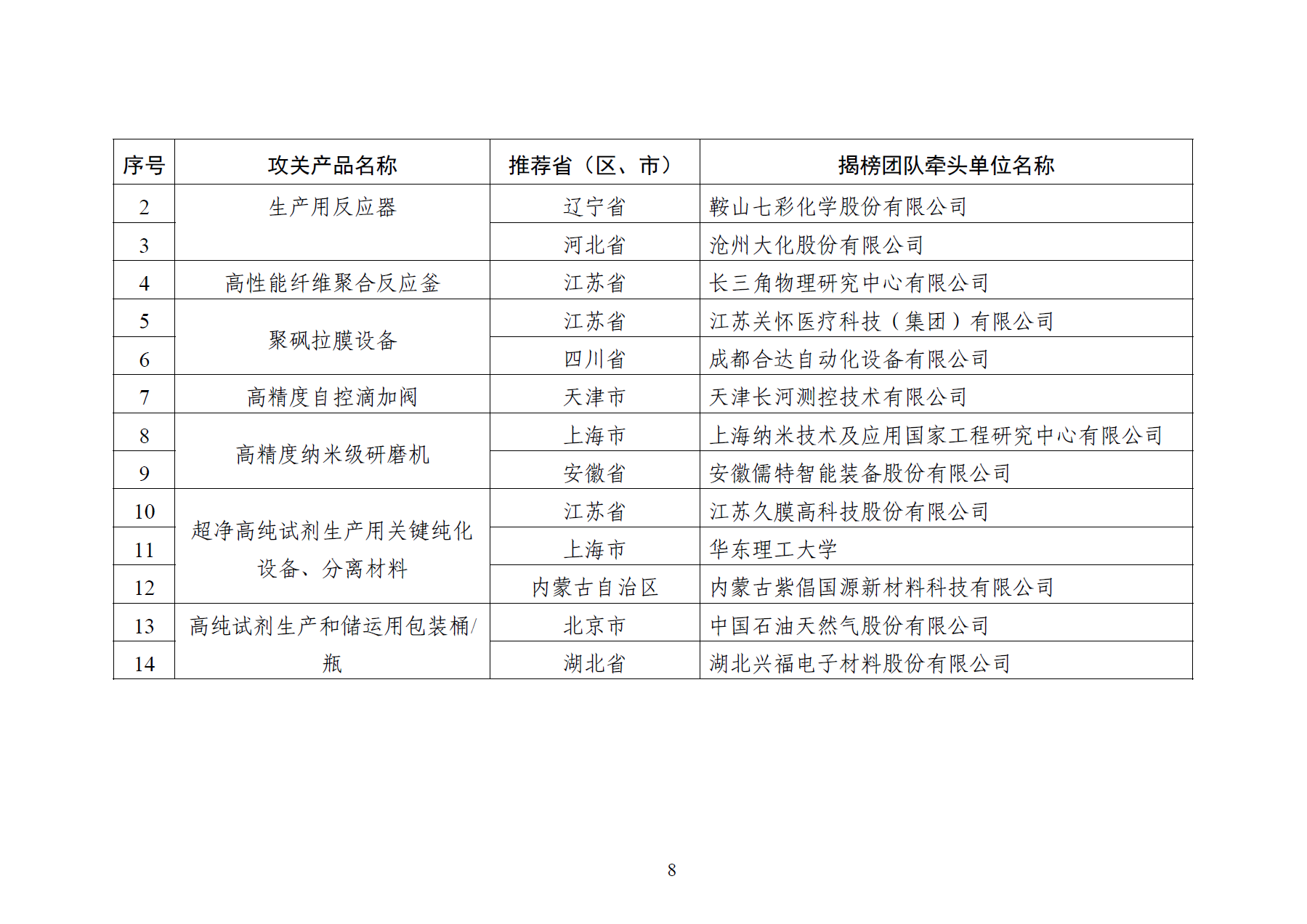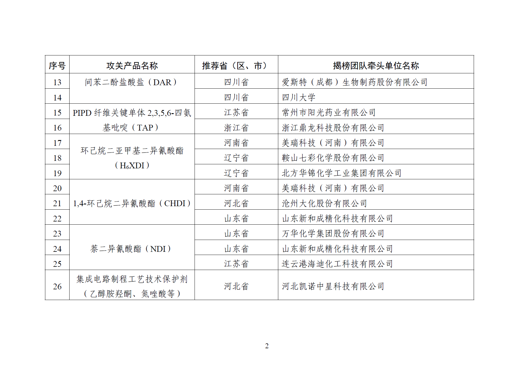 > 工信部发布《精细化工关键产品创新任务揭榜挂帅入围揭榜单位》